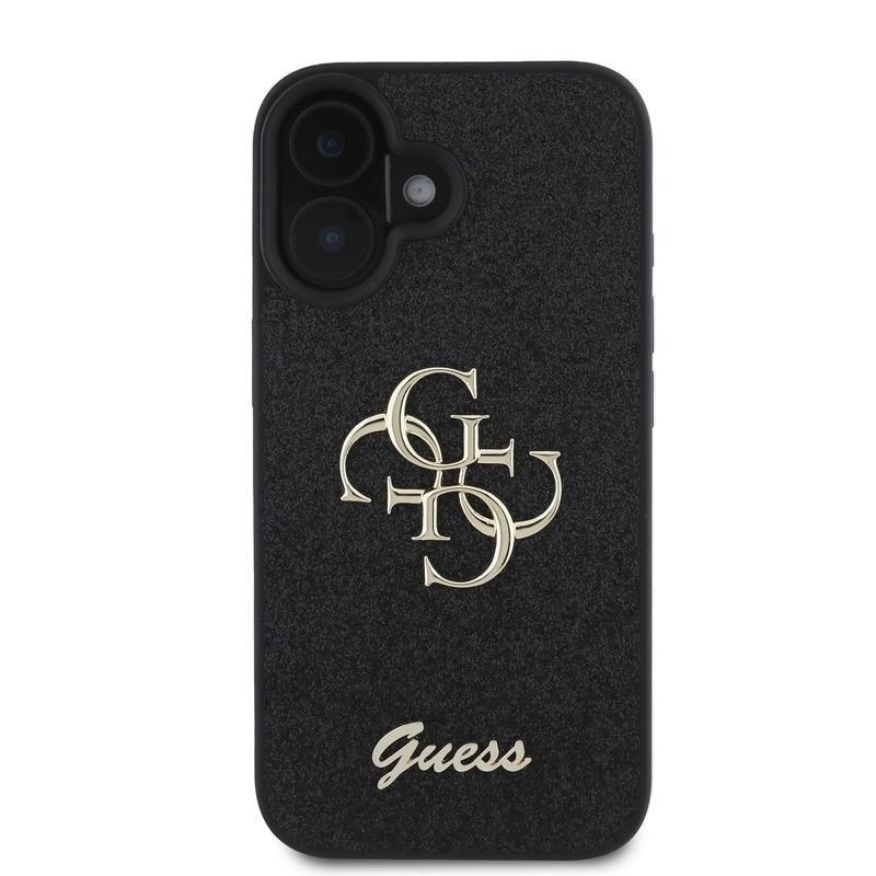 iPhone 16 Guess Fixed Glitter 4G Metal Logo Cover - Sort