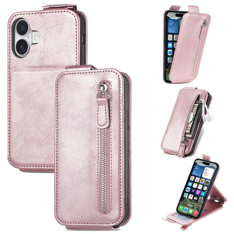 Dette vertikale flipcover med lynlåslomme giver din iPhone 16 all-around beskyttelse!