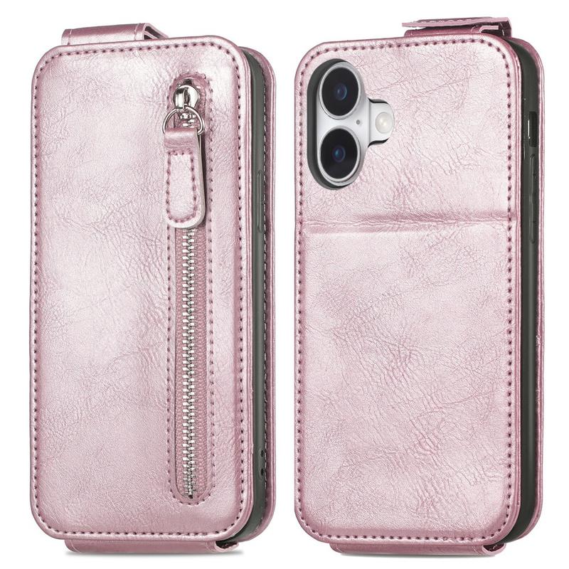 - Elegant vertikalt flipcover med lynlåslomme til iPhone 16