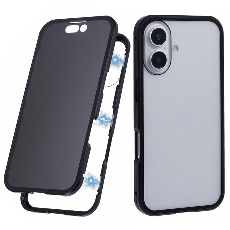 iPhone 16 Magnetisk Cover med Hærdet Glas - Privatliv - Sort