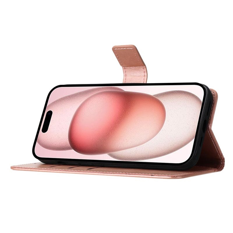 Den unikke pung beskytter iPhone 16 mod hverdagens ridser og stød og virker også som stativ til video. Pungen har indvendig rum til kort og en større lomme til kontanter, så du kan opbevare alle dine værdigenstande samme sted.