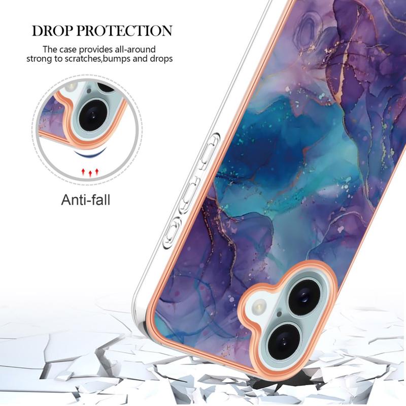 iPhone 16 Marmormønster Galvaniseret IMD TPU Cover - Lilla