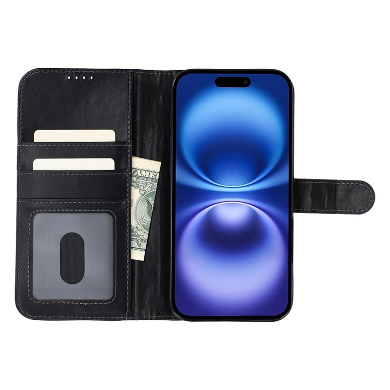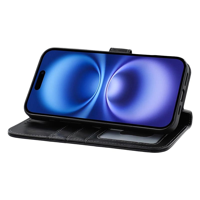 MyTPhone CardMate Premium læder pung taske til iPhone 16 - stander funktion, kortholder, understøttelse af trådløs opladning, 2x skærmbeskyttelse