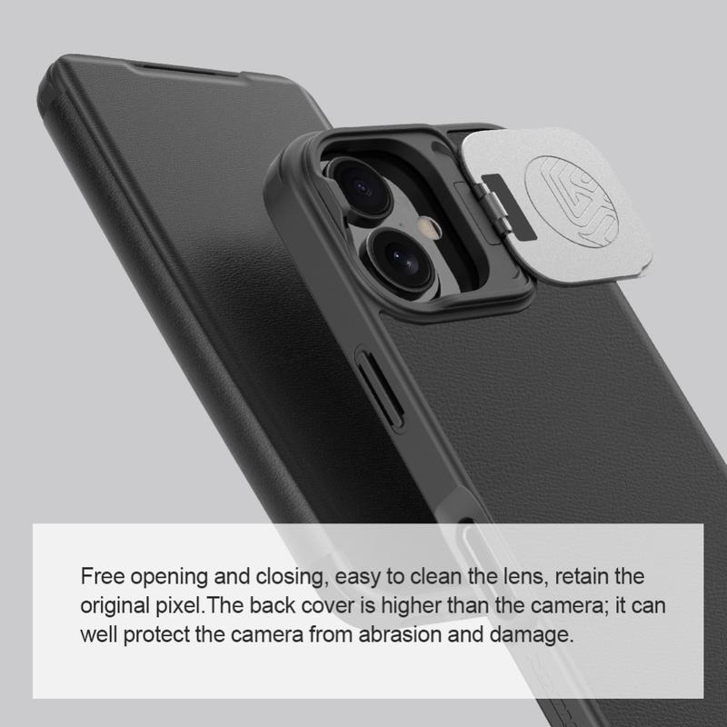 Nillkin Qin Prop Flip Cover til iPhone 16 - med beskyttelse af kameralinsen