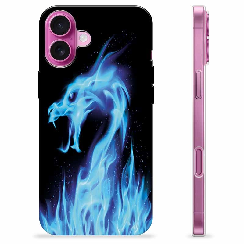 iPhone 16 Plus TPU Cover - Blå Ild Drage