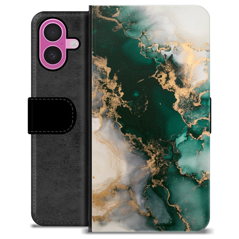iPhone 16 Plus Premium Flip Cover med Pung - Jade Marmor