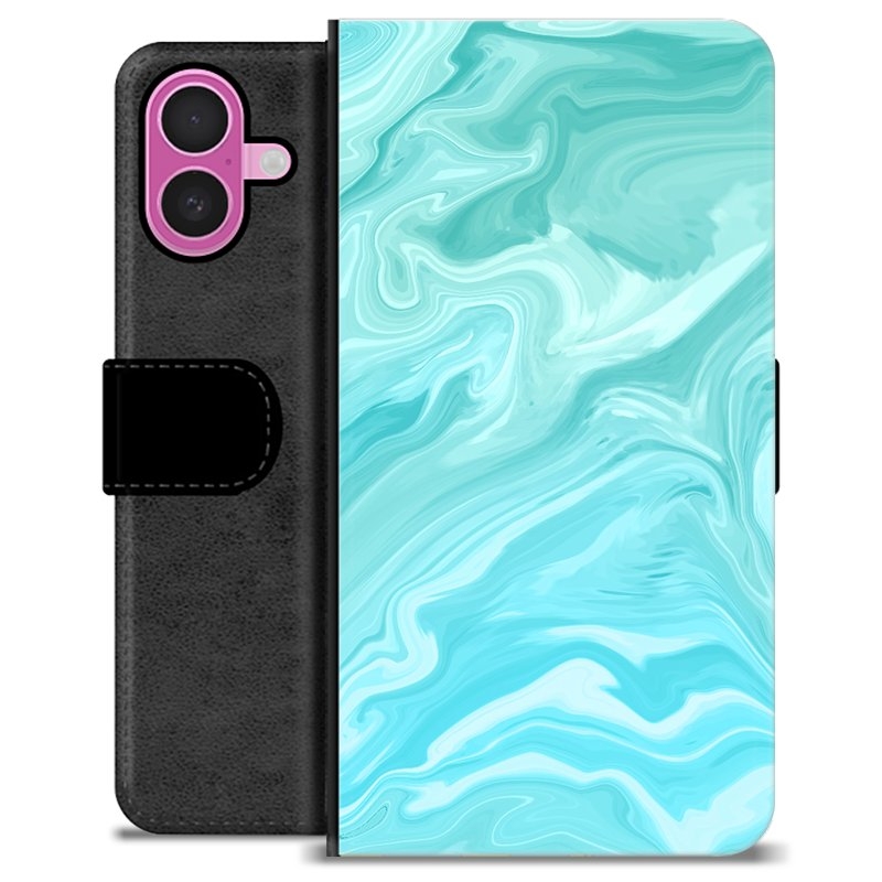 iPhone 16 Plus Premium Flip Cover med Pung - Blå Marmor