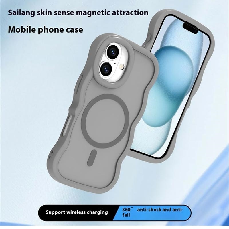 iPhone 16 Plus Bølgekant magnetisk hybrid cover - grå