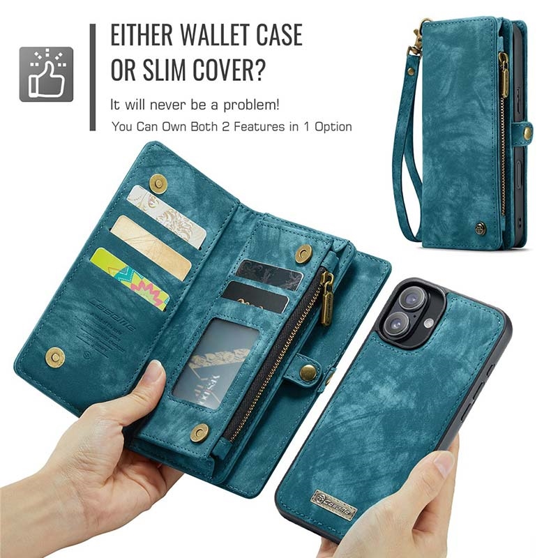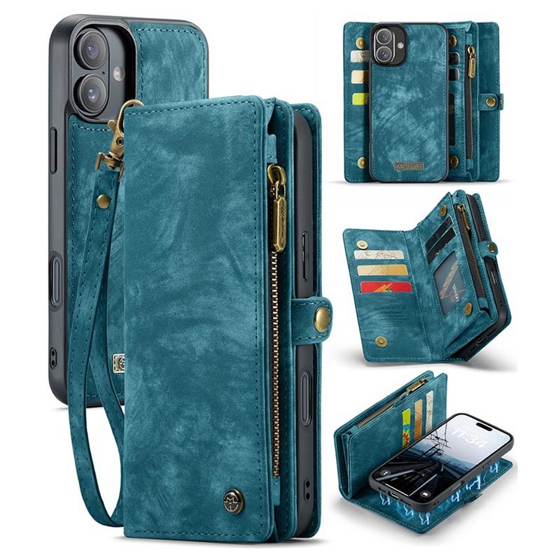 iPhone 16 Plus Caseme 008 2-i-1 Multifunktionel Pung - Blå
