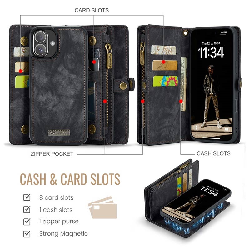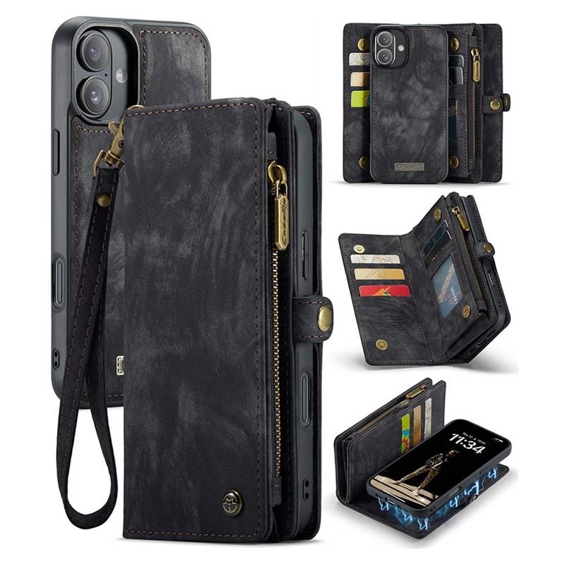 iPhone 16 Plus Caseme 008 2-i-1 Multifunktionel Pung - Sort