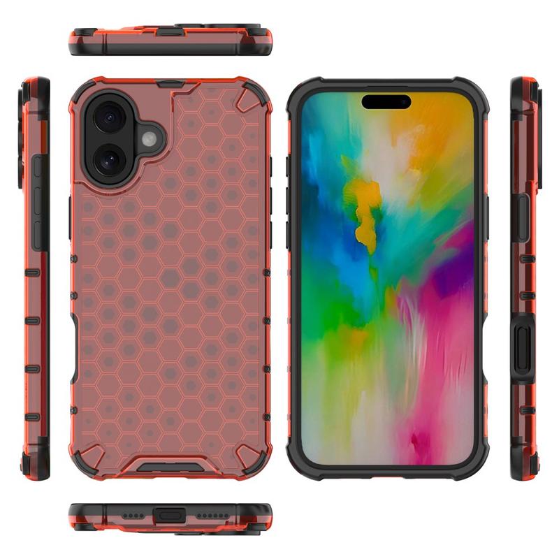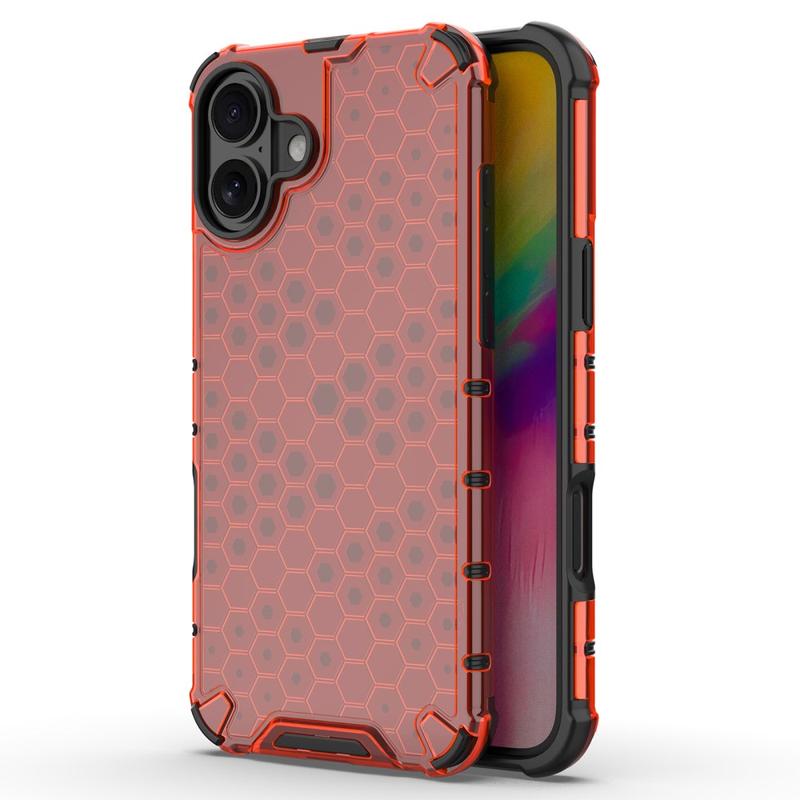 iPhone 16 Plus Honeycomb Armored Hybrid Cover - Rød