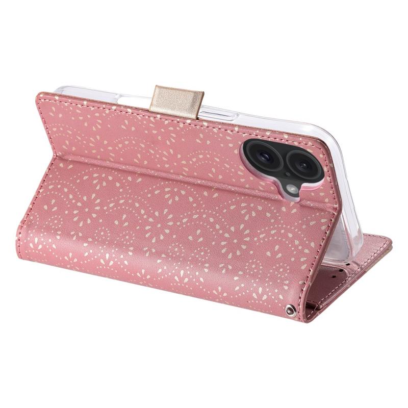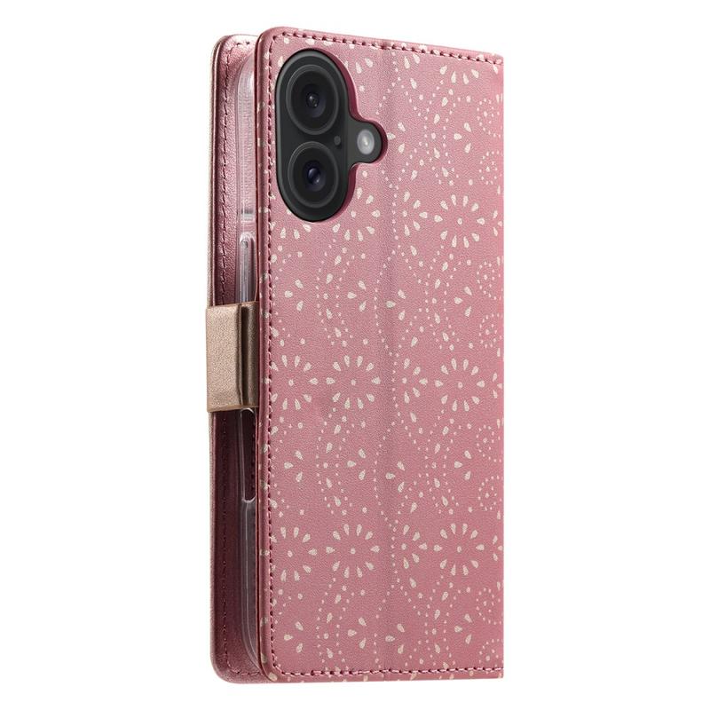 iPhone 16 Plus Lace Pattern Etui med Pung - Rødguld