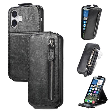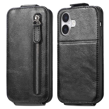 - Elegant vertikalt flipcover med lynlåslomme til iPhone 16 Plus