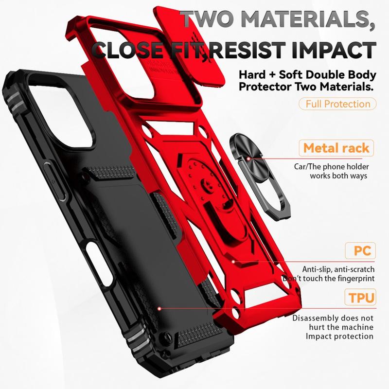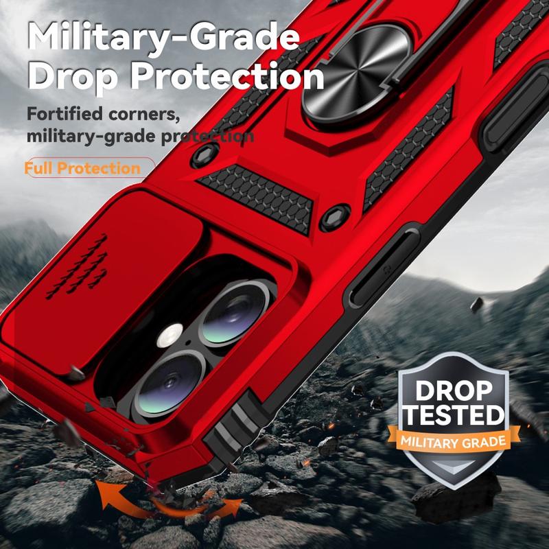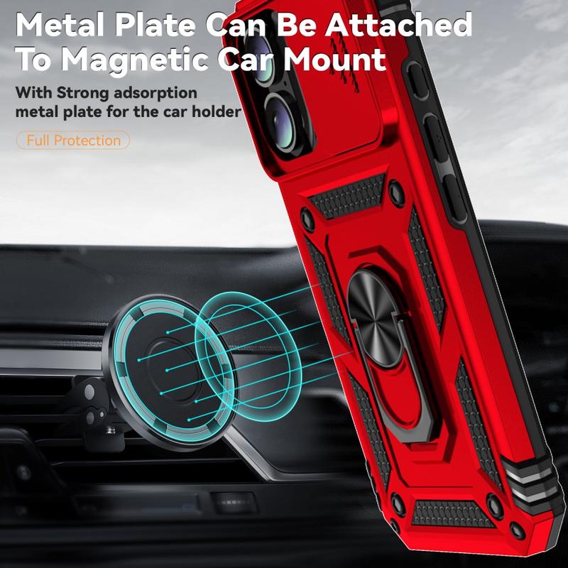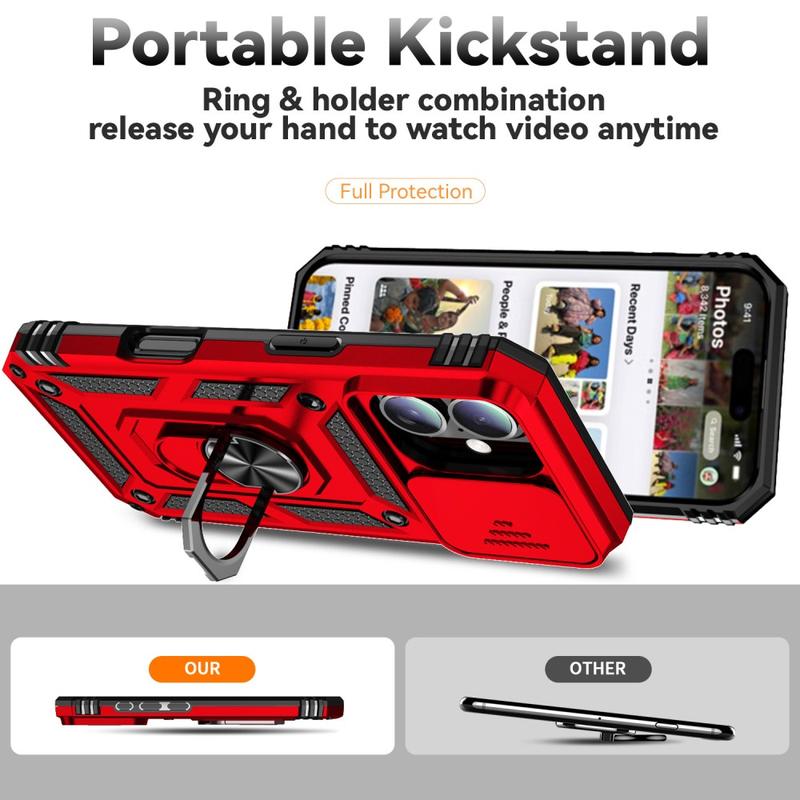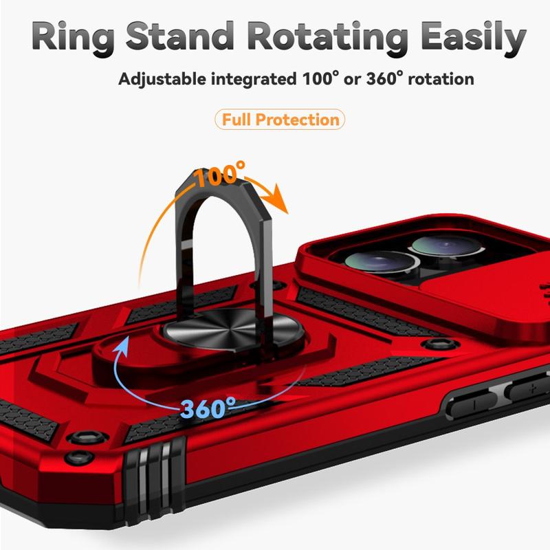 iPhone 16 Plus Roterende Ring Hybrid Cover med Kameraskjold - Rød