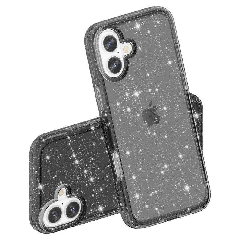 iPhone 16 Plus Stylish Glitter Series Hybrid Cover - Sort
