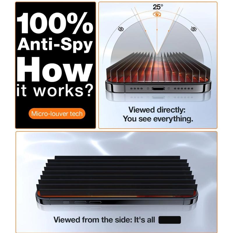 - Anti-spion skærmbeskyttere: Disse beskyttere bruger mikrolamellerteknologi til at blokere sidevisning, hvilket sikrer, at skærmen kun er synlig fra en direkte vinkel, perfekt til at holde personlige eller professionelle oplysninger sikre.