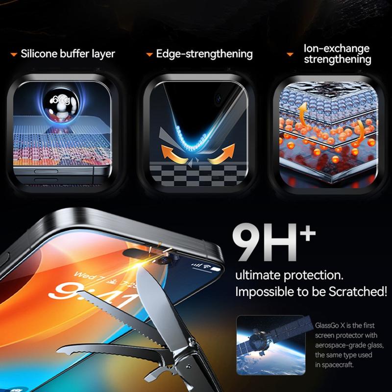 Torras GlassGo Skærmbeskyttelse Hærdet Glas til iPhone 16 Plus - med automatisk værktøj til fjernelse af støv - 2 stk.