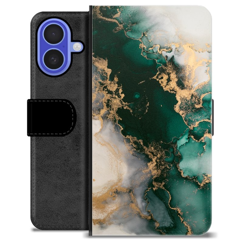 iPhone 16 Premium Flip Cover med Pung - Jade Marmor