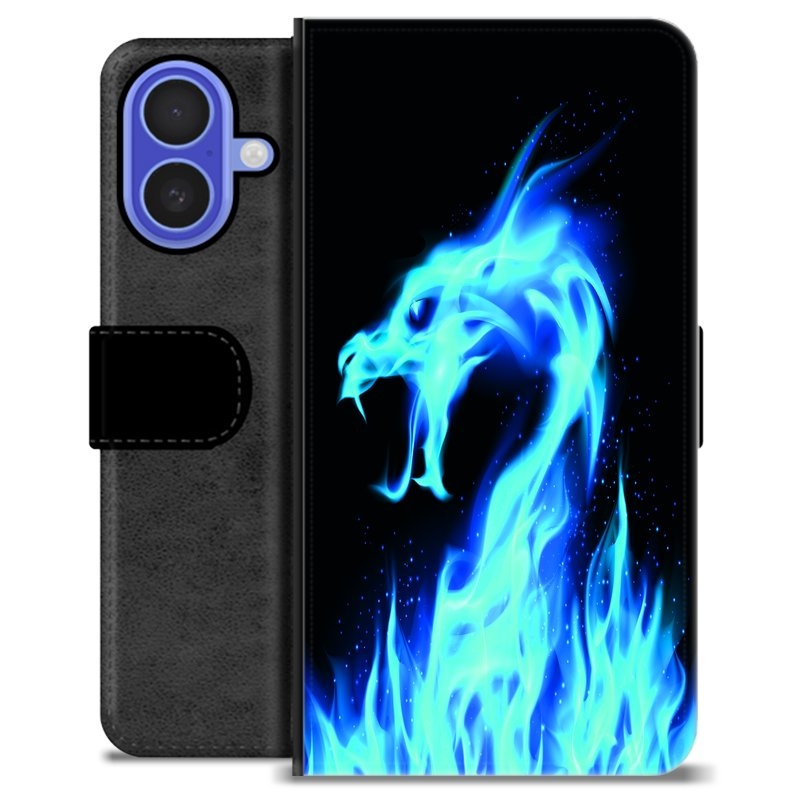 iPhone 16 Premium Flip Cover med Pung - Blå Ild Drage