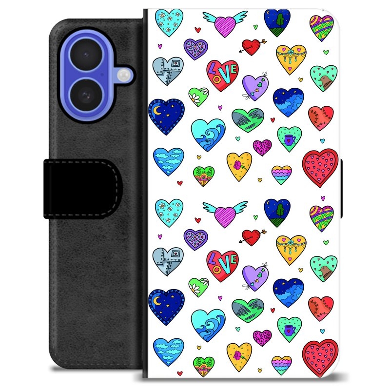 iPhone 16 Premium Flip Cover med Pung - Hjerter