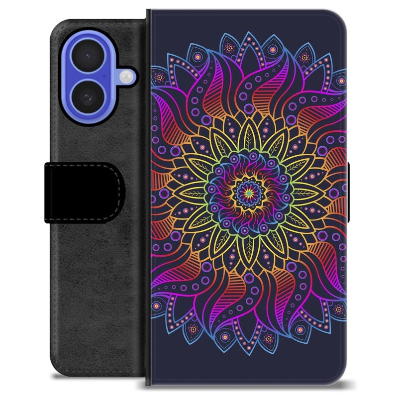 iPhone 16 Premium Flip Cover med Pung - Farverig Mandala
