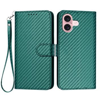Premium pungetui med rem til iPhone 16 - kulfiberstruktur