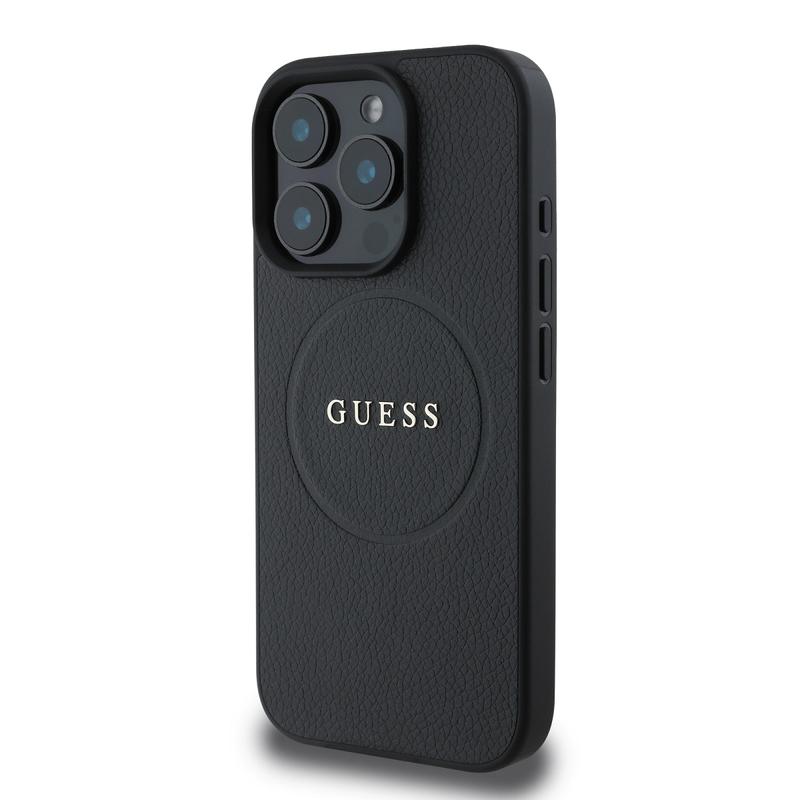 iPhone 16 Pro Max Guess Grained Classic Logo Hybrid Cover - MagSafe-kompatibel - Sort