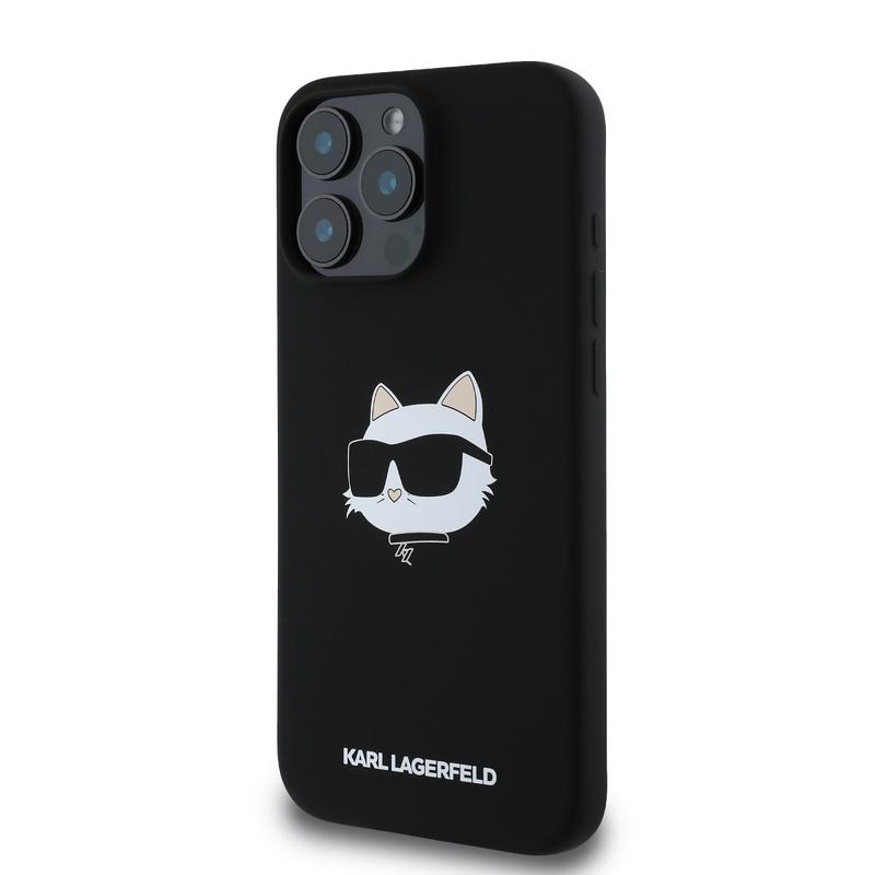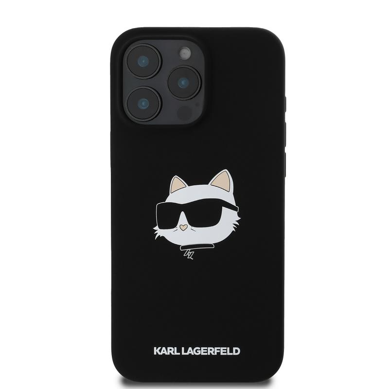 iPhone 16 Pro Max Karl Lagerfeld Choupette Head MagSafe cover i flydende silikone - Sort