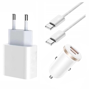 iPhone 15 Pro/15 Pro Max/16 Pro/16 Pro Max 20W oplader + biloplader m.kabel 2m - hvid