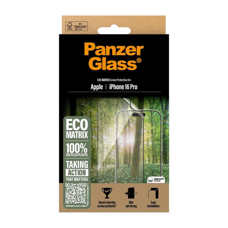 PanzerGlass Eco Matrix Ultra-Wide Fit skærmbeskytter med EasyAligner til iPhone 16 Pro Max - 100 % genanvendt