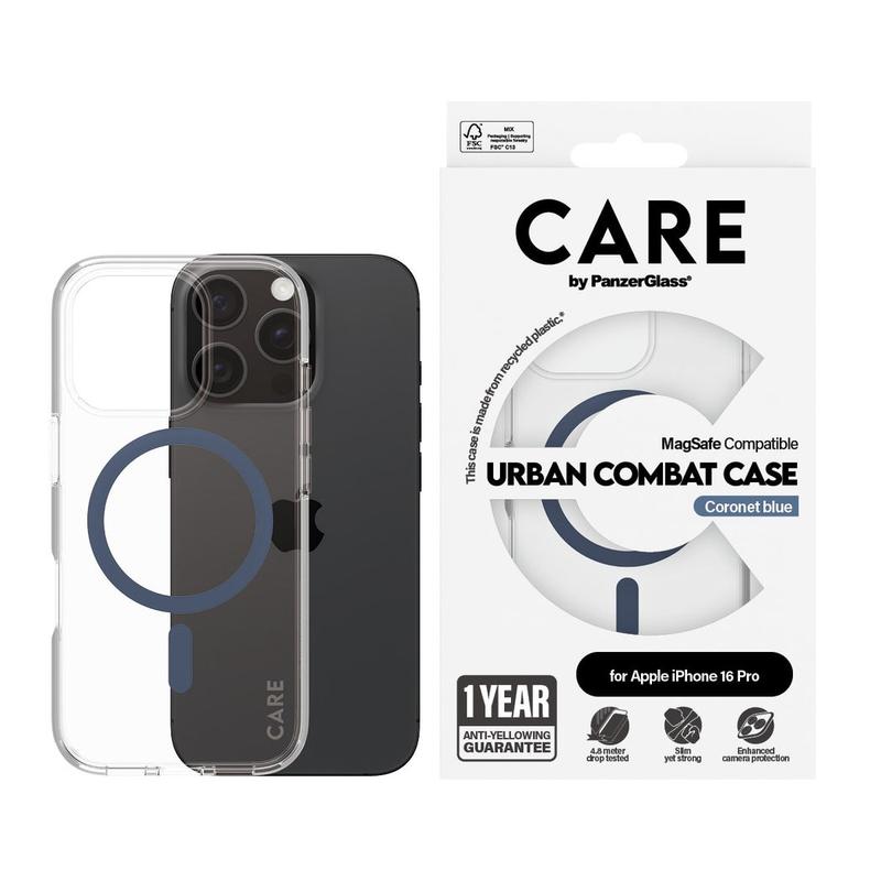 Care by PanzerGlass Transparent Urban Combat Cover til iPhone 16 Pro - MagSafe-kompatibel