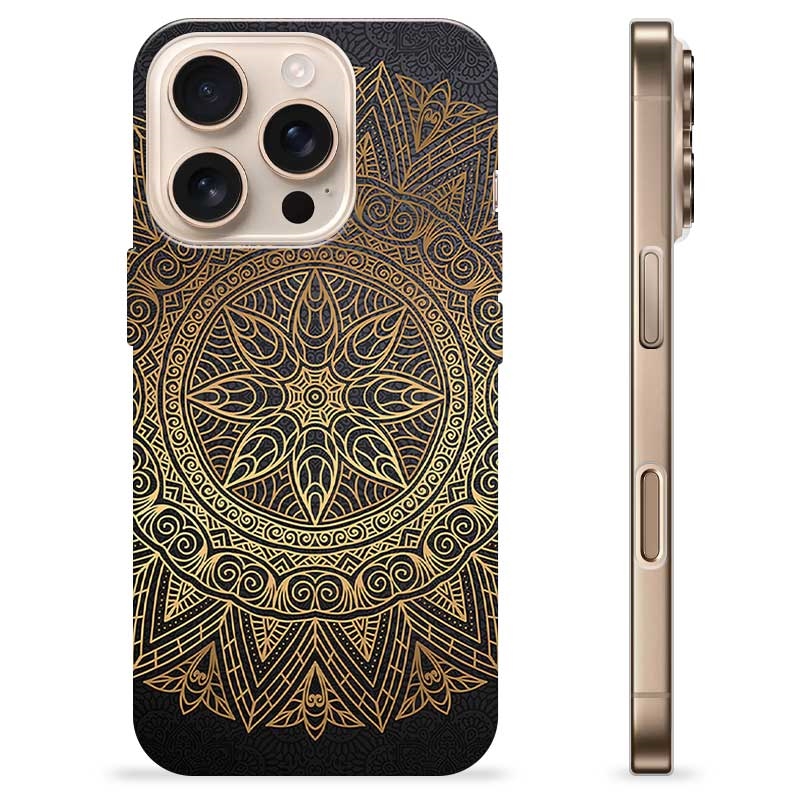iPhone 16 Pro Mandala Series Etui med Pung - Guld