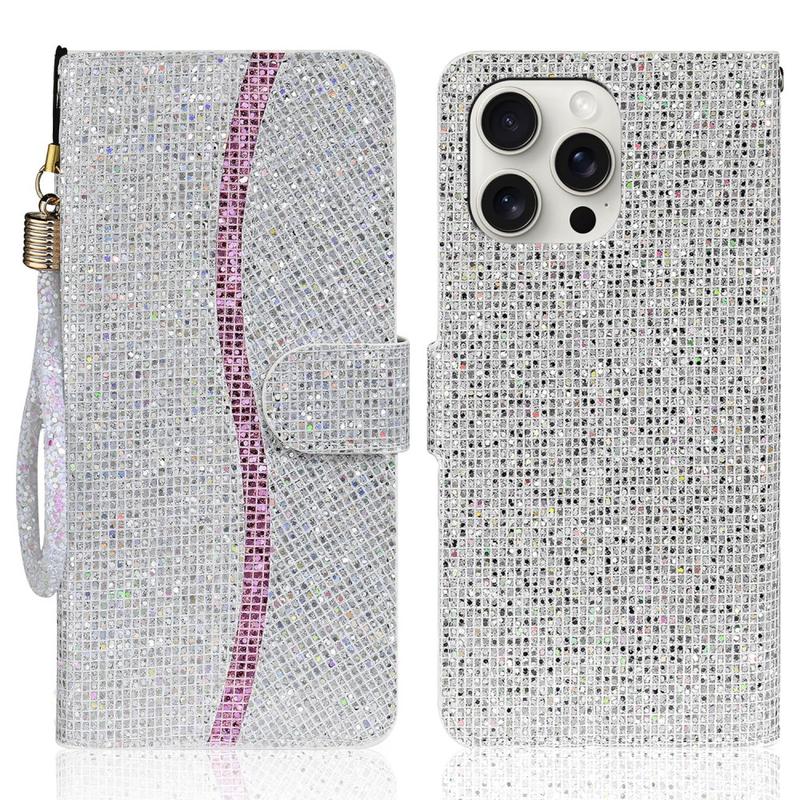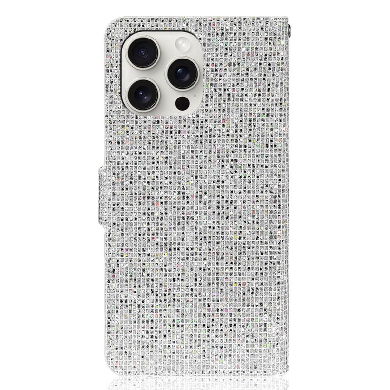 iPhone 16 Pro Max Stilfuldt glitterpungetui - sølv