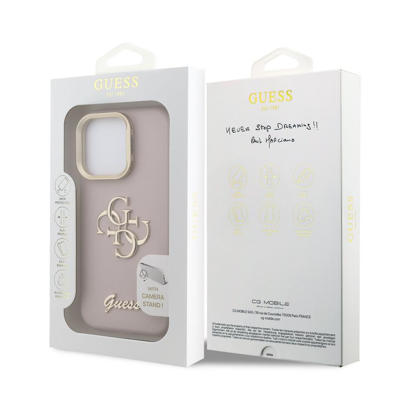 iPhone 16 Pro Max Guess 4G Metal Gold Logo Hybrid Cover - Pink