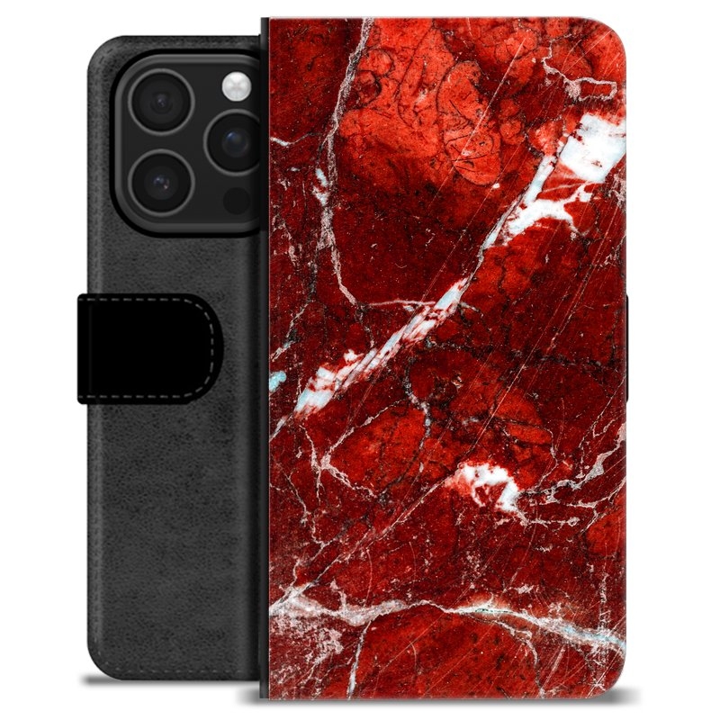 iPhone 16 Pro Premium Flip Cover med Pung - Rød Marmor