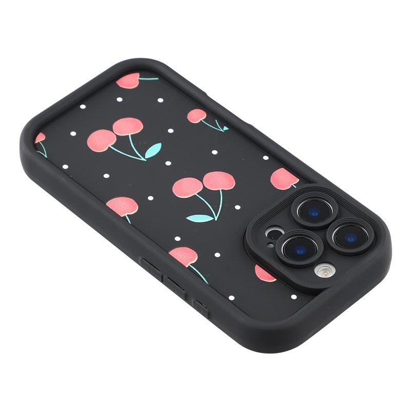 iPhone 16 Pro Max Stilfuldt stødsikkert TPU cover med forhøjede kanter - sort / Sløjfebundne kirsebær