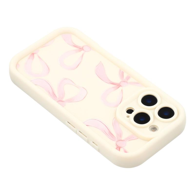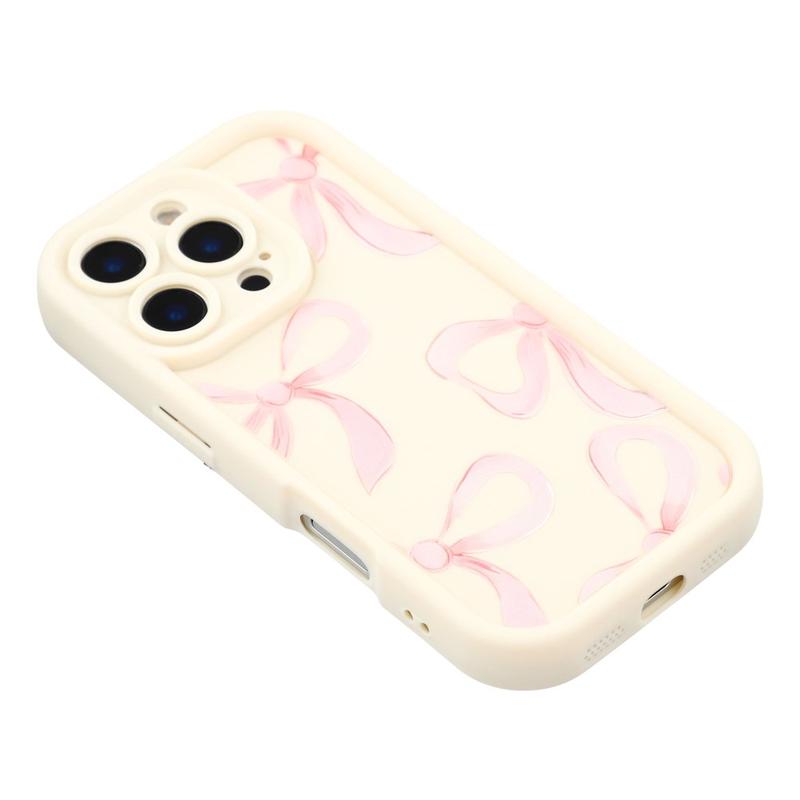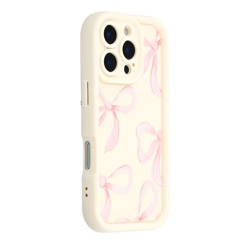 iPhone 16 Pro Stilfuldt stødsikkert TPU cover med forhøjede kanter - hvid / stor sløjfe