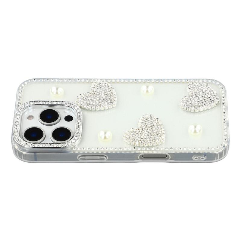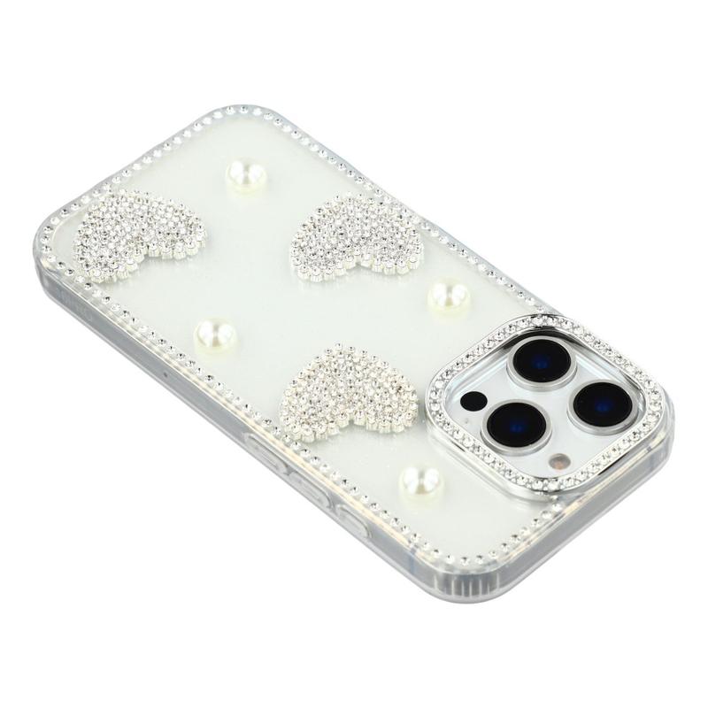 Dette iPhone 16 Pro Max-etui kombinerer pålidelig hverdagsbeskyttelse med glamourøs stil. Med glitrende rhinsten rundt om kanterne og funklende perlehjertedekorationer på bagsiden forvandler det din iPhone 16 Pro Max til et moderigtigt tilbehør, samtidig med at den er beskyttet mod ridser og stød.