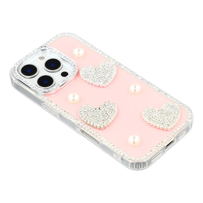 iPhone 16 Funklende Kærlighed og Perle Hybrid Cover - Pink