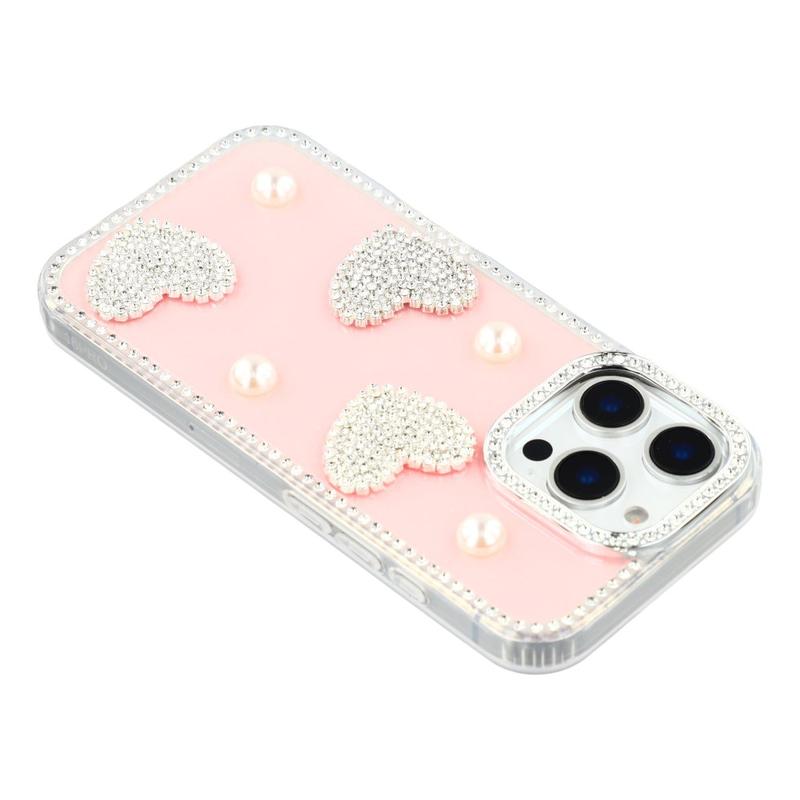 Dette iPhone 16 Pro-etui kombinerer pålidelig hverdagsbeskyttelse med glamourøs stil. Med glitrende rhinsten rundt om kanterne og funklende perlehjertedekorationer på bagsiden forvandler det din iPhone 16 Pro til et moderigtigt tilbehør, samtidig med at den er beskyttet mod ridser og stød.