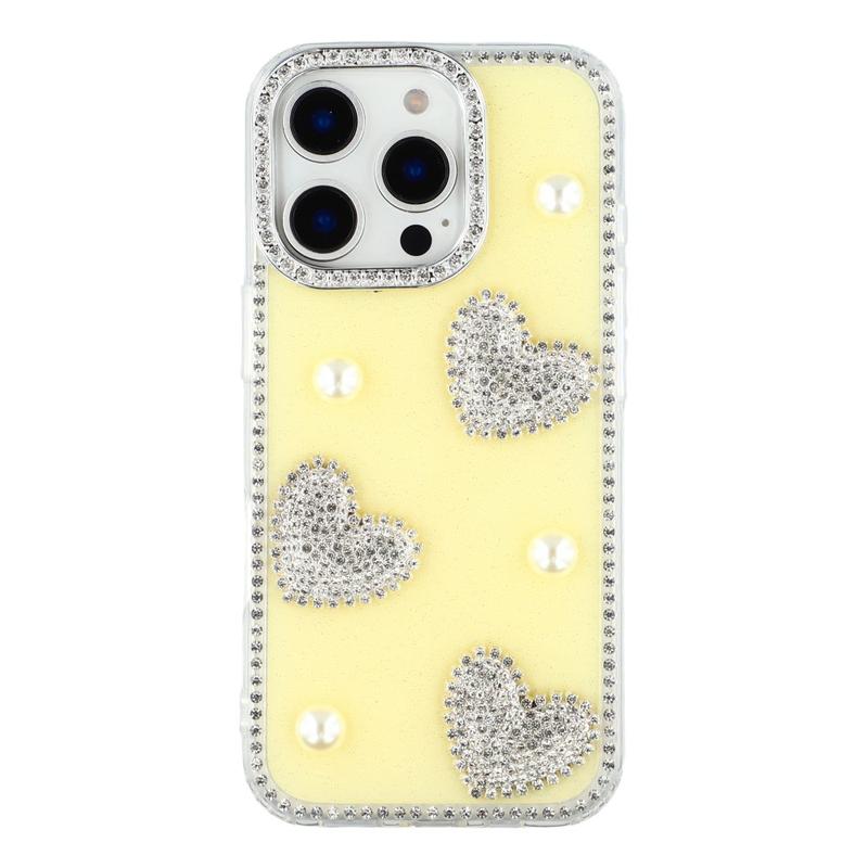 iPhone 16 Funklende Kærlighed og Perle Hybrid Cover - Gul
