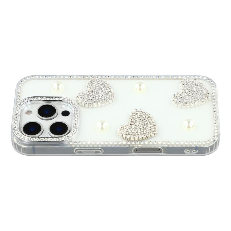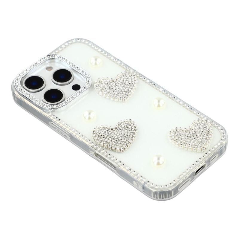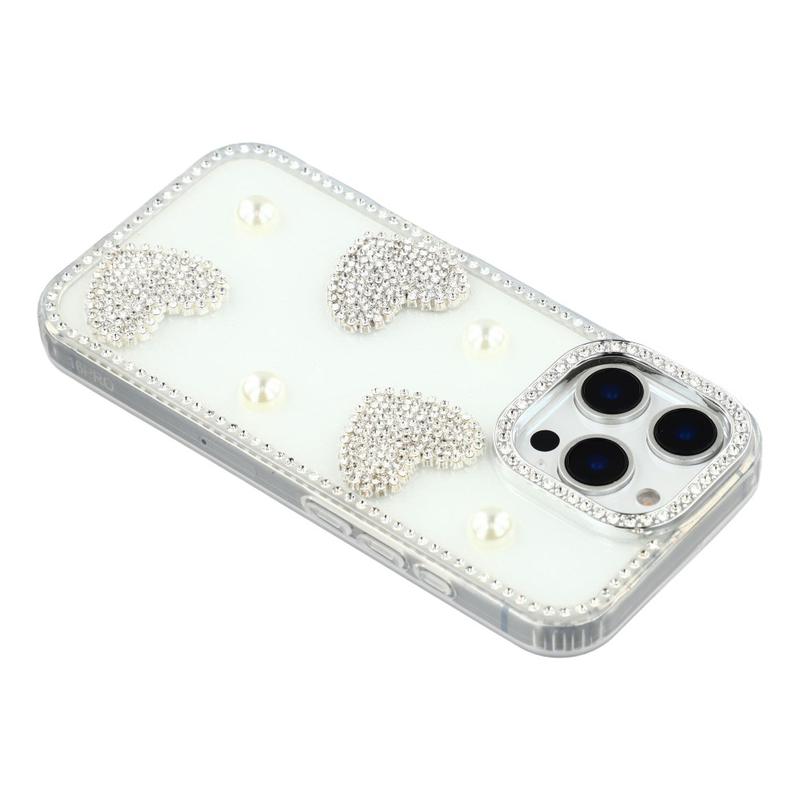iPhone 16 Pro Funklende Kærlighed og Perle Hybrid Cover - Hvid