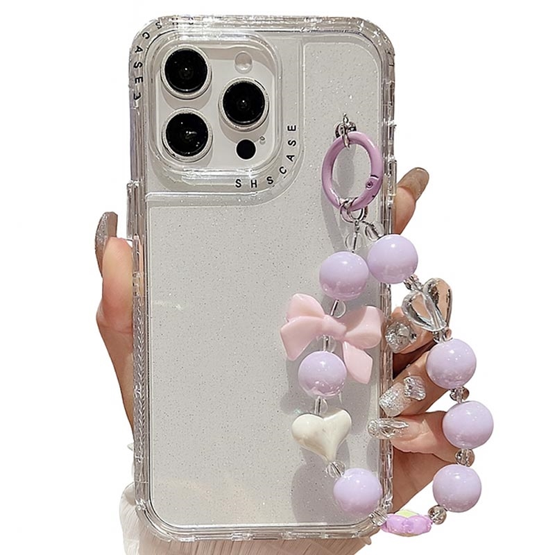iPhone 16 Pro Max Glitter stødsikkert hybrid cover med håndledsrem - gennemsigtig