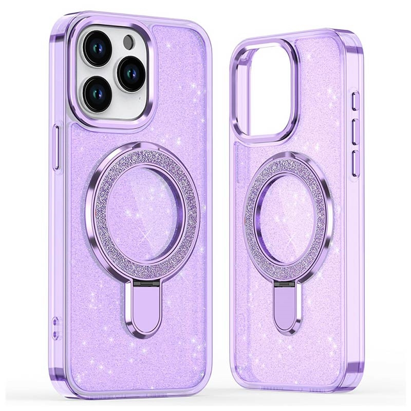 iPhone 16 Pro Max Glitter Hybrid cover med kickstand - MagSafe-kompatibel - Lilla