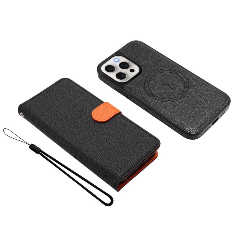 iPhone 16 Pro aftageligt pungetui med MagSafe, RFID-beskyttelse og håndrem - sort / orange