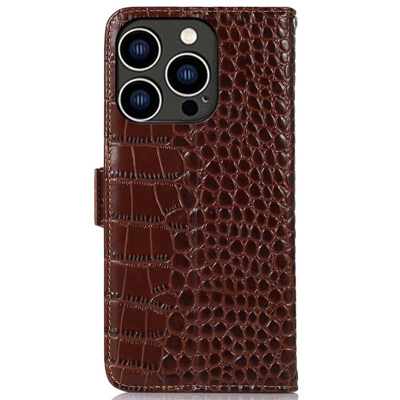 iPhone 16 Pro Crocodile Series Læderpung med RFID - Brun