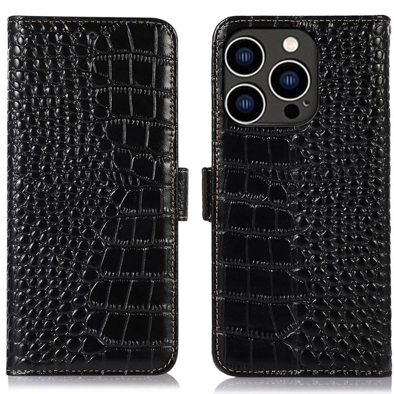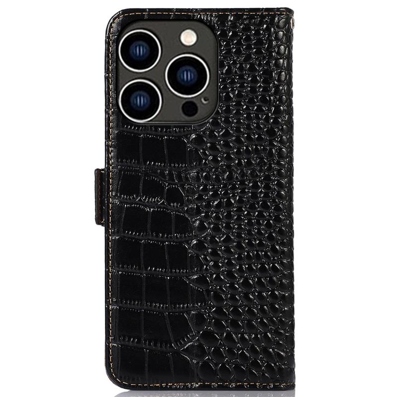 iPhone 16 Pro Crocodile Series Læderpung med RFID - Sort