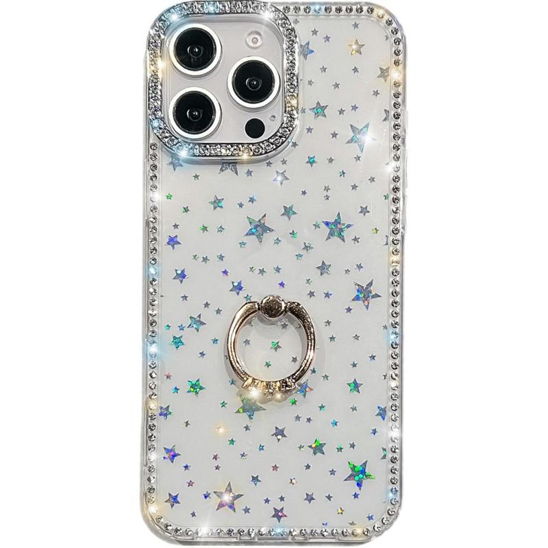 iPhone 16 Pro Max CrystalGlow Hybrid Cover med Ringholder - stjerner / gennemsigtig