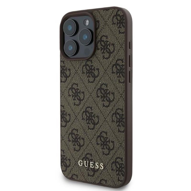 iPhone 16 Pro Guess 4G Metal Gold Logo Hybrid Cover - Brun