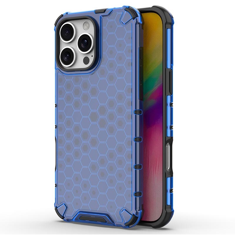iPhone 16 Pro Honeycomb Armored Hybrid Cover - Blå